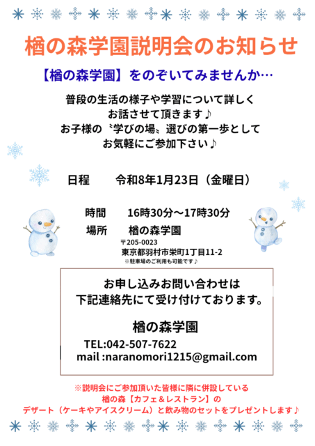 1月に楢の森学園の説明会を行います♬皆様、ぜひご参加ください☆
