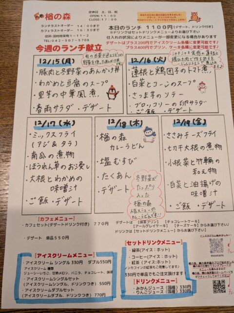 12月15日(月曜日)〜12月19(金曜日)の日替わりランチプレートのメニューです🎵
